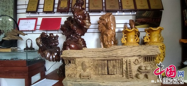 “父亲是一名小学美术教师,他有空经常教我画画,因此我从小就对雕刻产生了浓厚兴趣,2000年我到广东佛山打工,经常跑到工地附近一家根雕馆去看去学,后来我干脆去根雕馆打工当学徒,2年后我返回家乡创办兴华根艺工作室,开始根雕创作……”刘龙兴说。